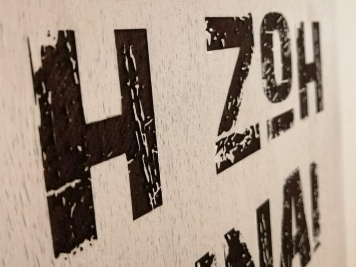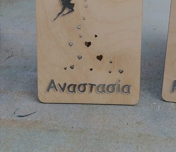 Engraving on painted wood